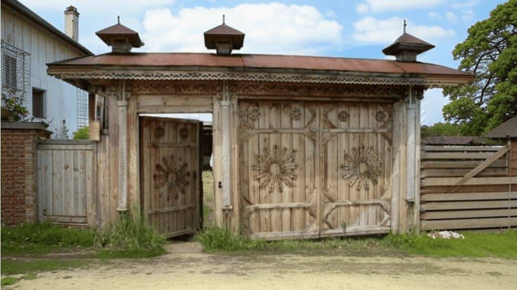 Кроме того, внутреннее открывание ворот и калиток помогало повысить безопасность двора. Когда ворота открываются наружу, их легче заблокировать или подпереть снаружи, и это может создать проблемы хозяину. А вот створки, которые открываются внутрь, можно запереть изнутри засовом, деревянным брусом или щеколдой, так что никто посторонний не сможет легко проникнуть внутрь.