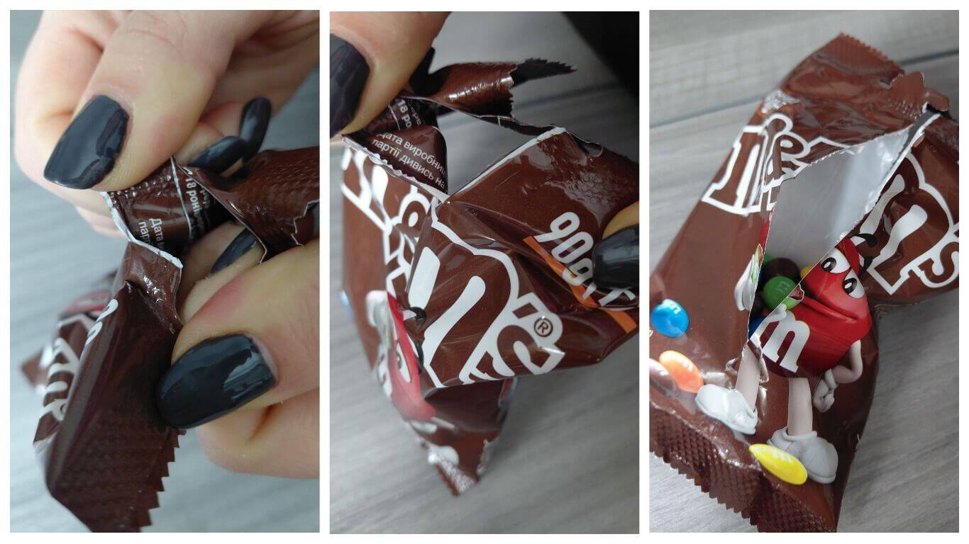 Это особенно удобно для пищевых продуктов: упаковка открывается аккуратно, а содержимое не рассыпается. К тому же пакет часто можно открыть ровно по линии, не повредив его форму.