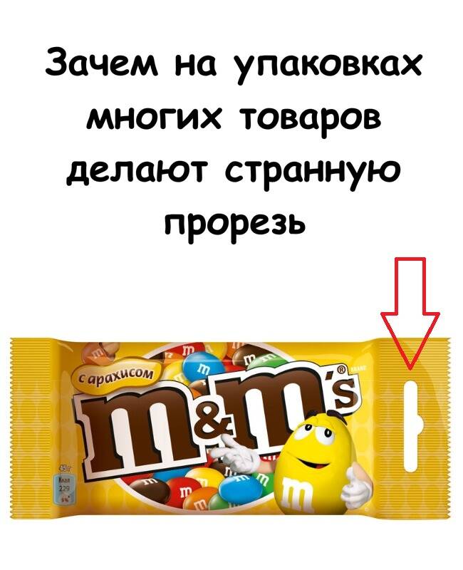 Во многих случаях прорезь нужна, чтобы упаковку было легче открыть. Обычно она служит стартовой точкой для разрыва пакета. Человеку не нужно искать ножницы или рвать упаковку как попало — достаточно потянуть за нужное место.