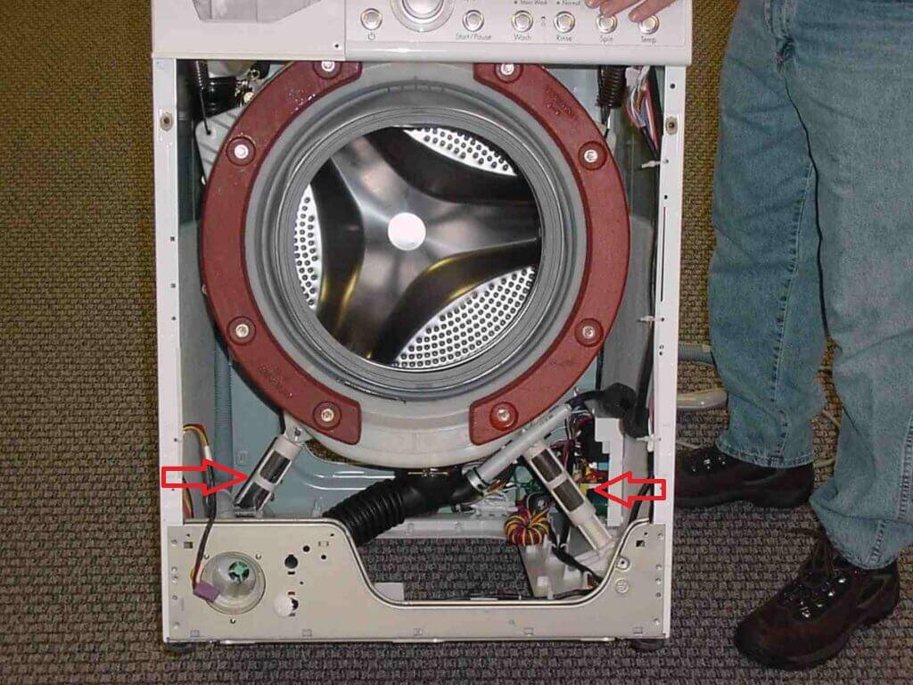 Чтобы их проверить и при необходимости смазать, отключите машину от сети и отодвиньте её от стены. Получите доступ к амортизаторам (обычно снизу или через заднюю крышку).