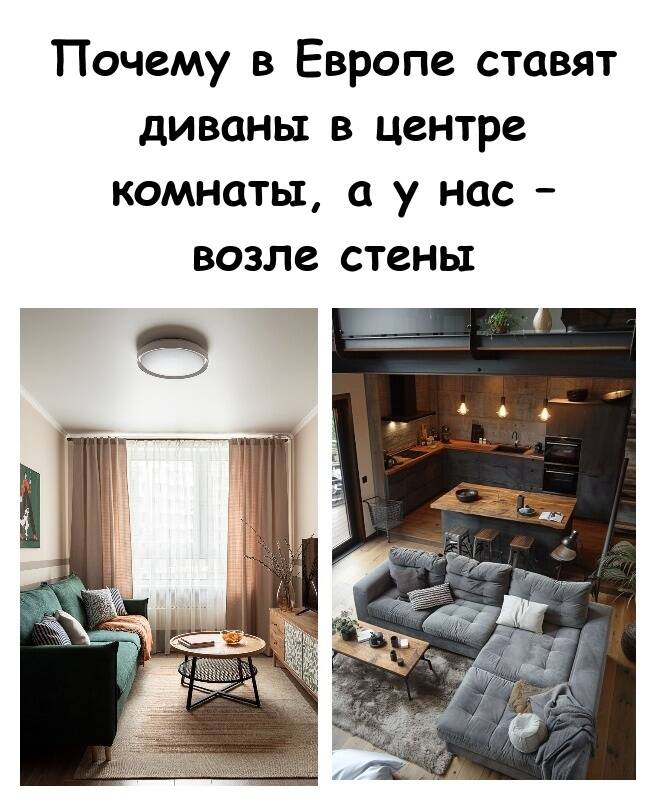 Когда мы смотрим западные фильмы или пролистываем интерьерные журналы, то часто замечаем любопытную деталь: диваны и кресла там стоят не у стены, а прямо в центре комнаты. У нас же подобное решение встречается гораздо реже — большинство предпочитает придвинуть мягкую мебель вплотную к стене. На первый взгляд может показаться, что дело в привычке или нехватке места, но корни этой разницы уходят гораздо глубже.