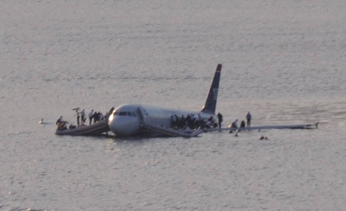 Airbus 320 совершил вынужденную посадку на реке Гудзон после столкновения с птицами, которое привело к помпажу и отказу обоих двигателей, wikipedia
