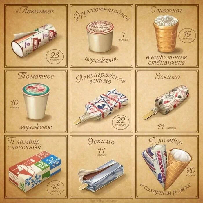 Советский пломбир, выпускавшийся по единому ГОСТу с 1941 года, считался эталоном натуральности среди всех сладостей. Но самым внушительным был пломбир весом 250 граммов и стоимостью 48 копеек.