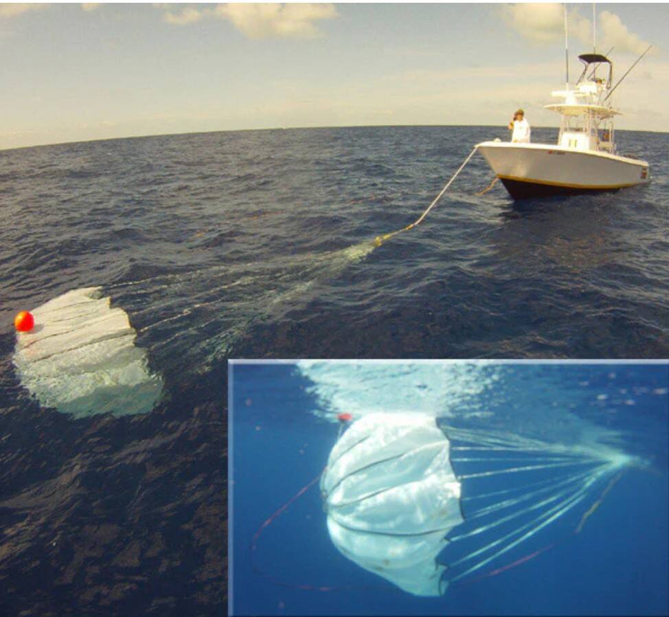 Есть ещё морские якоря-парашюты. Представьте себе спасательную шлюпку в море, которую сносит течением. Чтобы она не уносилась слишком быстро, используют специальный купол, похожий на парашют, который раскрывается в воде. Он создаёт сопротивление, замедляет движение и помогает объекту оставаться на месте. Такой парашют работает и для больших судов.
