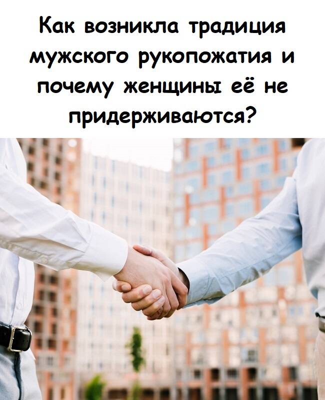 Скорее всего, корни этой гендерной особенности кроются в социальном устройстве прошлого. На протяжении веков рукопожатие было жестом из мира мужчин: воинов, купцов, политиков, ремесленников.