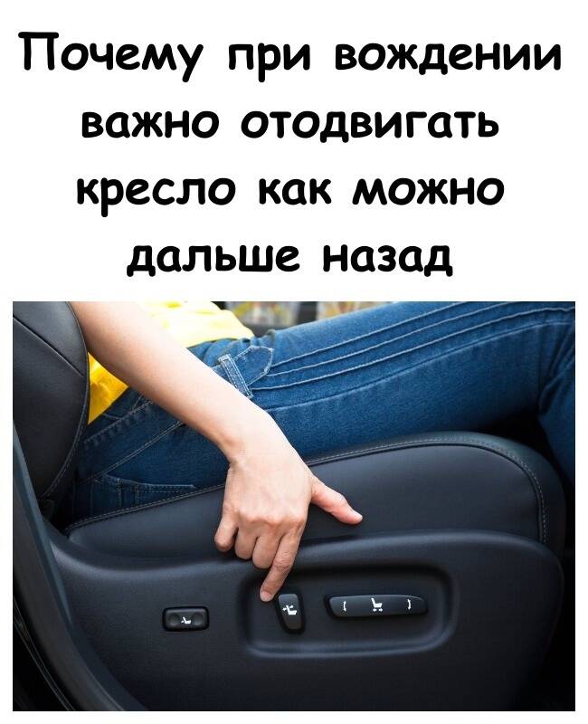 Если кресло отодвинуть слишком далеко, некоторые водители не смогут полностью нажать педали (тормоз, газ). Это опасно: в критической ситуации нужно иметь полный контроль над педалями. Инструкции в руководствах к автомобилям обычно требуют, чтобы водитель мог нажимать педали полностью, не натягивая ногу.