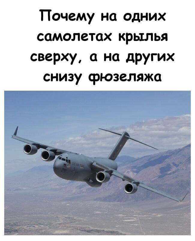 В начале развития авиации инженеры активно спорили, где лучше крепить крылья. С годами стало ясно, что для каждой цели своя конструкция. Зная это, глядя на самолёт, можно почти сразу понять его «характер» и предназначение — просто посмотрев, где у него крылья.
