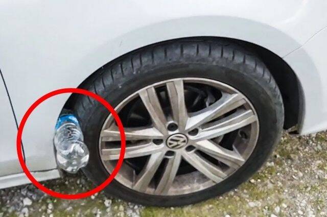 Вот как работает этот «фокус». Пока вы спокойно пили кофе или закупались в супермаркете, к вашему автомобилю подошел «доброжелатель». Он не взламывает замки и не бьет стекла. Вместо этого он берет обычную пластиковую бутылку и незаметно подкладывает ее между задним колесом и аркой колеса.