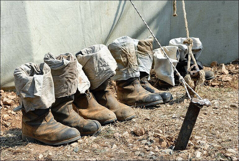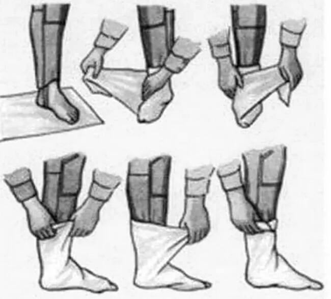 Казалось бы, что может быть быстрее натягивания носка? Оказывается, может! Бывалые солдаты придумали метод, который сегодня назвали бы «армейским лайфхаком». Портянку просто расстилали поверх голенища сапога, а потом нога просто всовывалась внутрь, затягивая ткань за собой. Конечно, такой способ считался «на скорую руку» — рано или поздно портянку все равно приходилось перематывать по всем правилам, чтобы избежать потертостей. Но в условиях, когда счет идет на секунды, а сапог надеть нужно немедленно, этот метод был настоящей палочкой-выручалочкой.