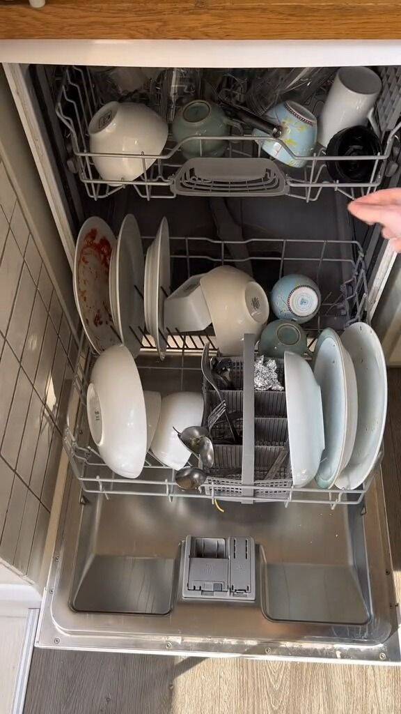 Предварительное ополаскивание. Тарелки и бокалы после жирной пищи (например, от майонеза или сливочного соуса) лучше сначала сполоснуть в раковине под тёплой водой с каплей обычного жидкого средства для мытья посуды. Это удалит основную часть жира, который сложно отмыть в посудомоечной машине.