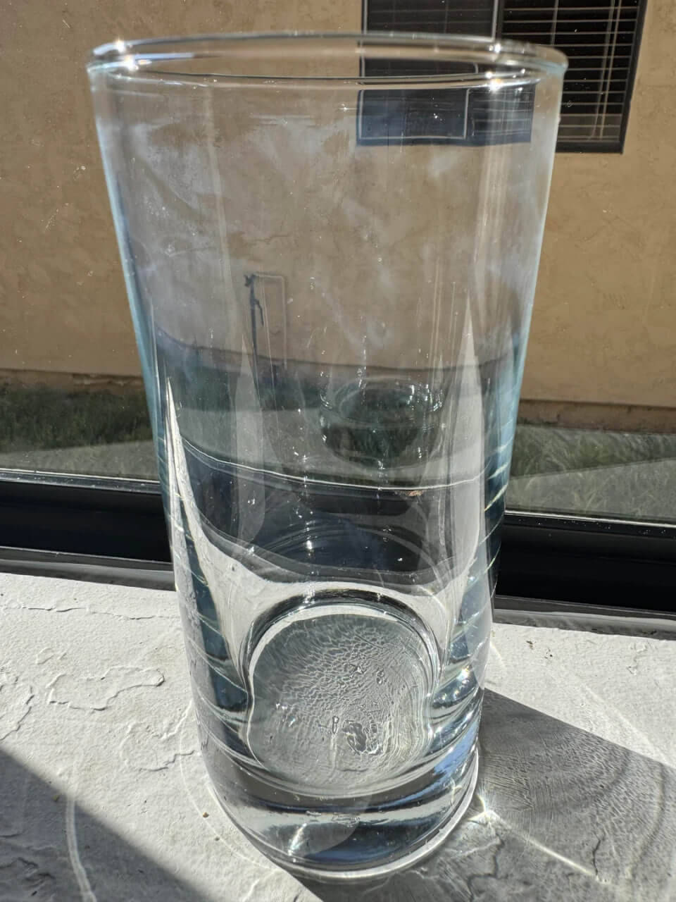 Чаще всего белый налёт — это не что иное, как знаки нашего времени, а именно — осадок солей кальция и магния, которые в изобилии содержатся в водопроводной воде. «Жёсткая» вода (именно такая течёт из кранов в большинстве крупных городов) вступает в конфликт с моющими средствами и нагревается до высоких температур в посудомоечной машине. Результат этого «химического противостояния» — известковый осадок, который особенно хорошо заметен на прозрачном и гладком стекле.