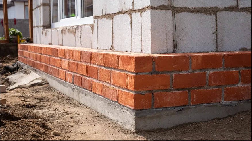 Выравниватель идеального горизонта. Фундамент, даже самый аккуратный, редко бывает идеально ровным. Перепады в пару сантиметров — обычное дело. Кирпичная кладка позволяет эти неровности скомпенсировать и вывести абсолютно ровную плоскость, на которую уже ляжет первый ряд стенового материала. Для газобетона, где толщина шва всего 2-3 мм, это критически важно.