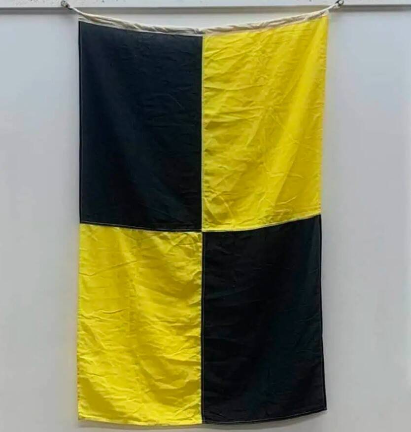 Тем временем для обозначения карантина или опасного судна используют жёлто-чёрные флаги (буква «L» — Lima в Международном коде сигналов) или другие комбинации, сигнализирующие «не подходить» или «опасность на борту».