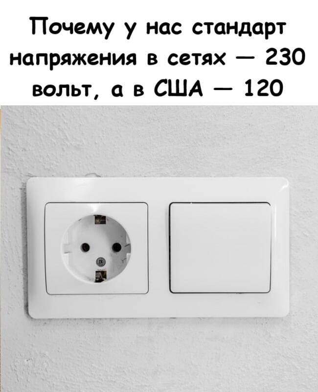 К тому же, американская электрификация начиналась не с гигантских планов, а с локальных сетей: освещение богатых домов, офисов, театров. Небольшие генераторы стояли прямо в кварталах. Когда победил переменный ток Николы Теслы (который легче передавать), напряжение для конечных потребителей решили не менять — слишком много оборудования уже было рассчитано на 110 В. Так и закрепился стандарт ~120 В.