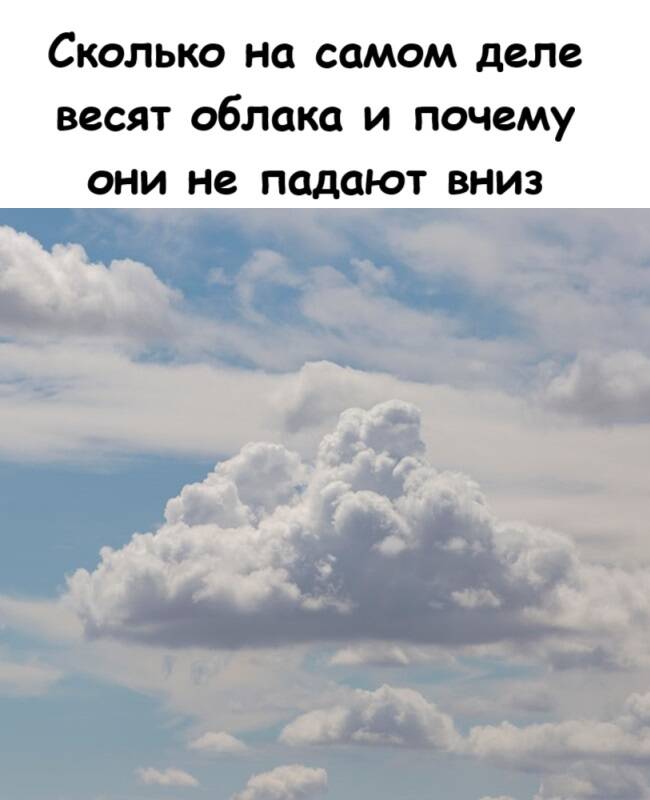 В ясный день мы видим воздушные, невесомые облака. Но что, если мы скажем вам, что эта пушистая «вата» над головой на самом деле — гигантский водный резервуар весом с океанский лайнер или даже целый город? Здравый смысл подсказывает: всё тяжёлое должно падать. Почему же тогда облака, чья масса порой исчисляется миллионами тонн, не обрушиваются на нас всем своим весом?