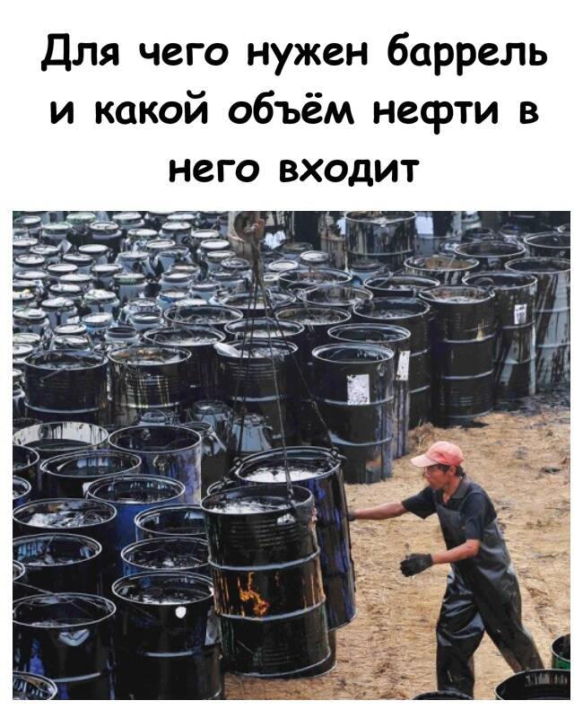 Нефтяной баррель — 42 галлона (≈159 л) — глобальный стандарт.