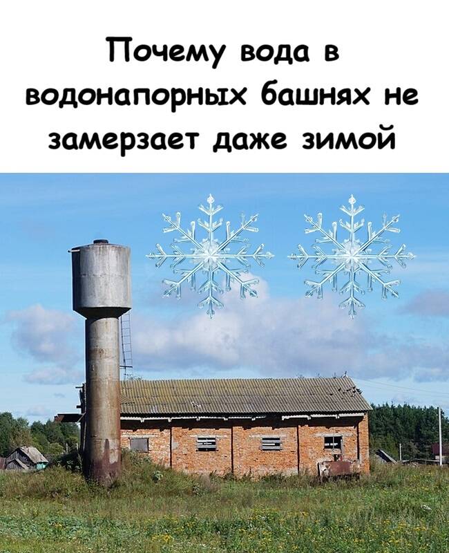 1. Насос качает воду из скважины (где у неё стабильная плюсовая температура) на самый верх башни, в огромный резервуар.