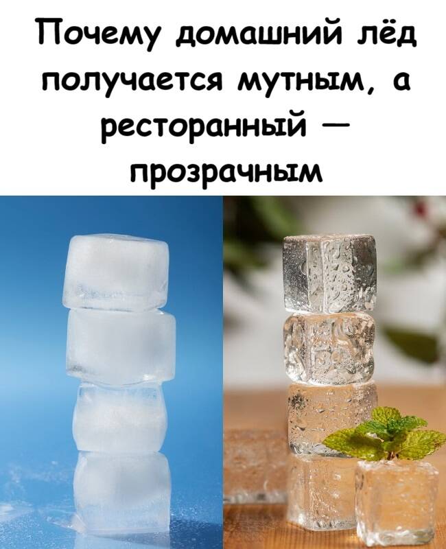 Итак, секрет прозрачного льда — в медленном замораживании чистой и «безмолвной» (без газов) воды. Теперь, глядя на мутный кубик в своём стакане, вы знаете, что это не брак, а следствие бурной домашней физики. А если захочется совершенства — у вас есть инструкция к действию.