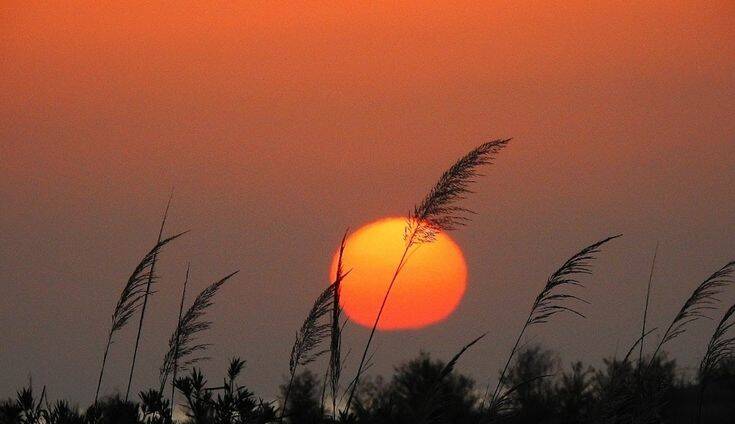 Вечером же сцена меняется кардинально. На закате Солнце находится у горизонта. Чтобы добраться до наших глаз, его лучам приходится пробираться сквозь атмосферу по длинной, наклонной трассе. На этом долгом пути почти все резвые синие и фиолетовые лучи успевают «растрястись» и рассеяться в стороны.