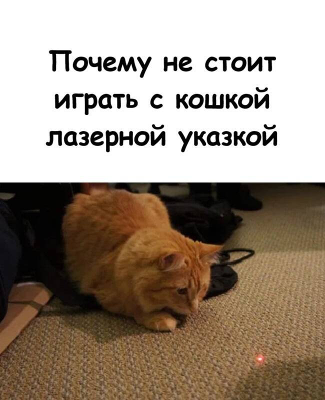 Развитие навязчивых состояний: самый тревожный сценарий. Кошка может начать охотиться за любыми бликами и пятнами света (от телефона, часов, стекла), даже когда указки нет в руках.