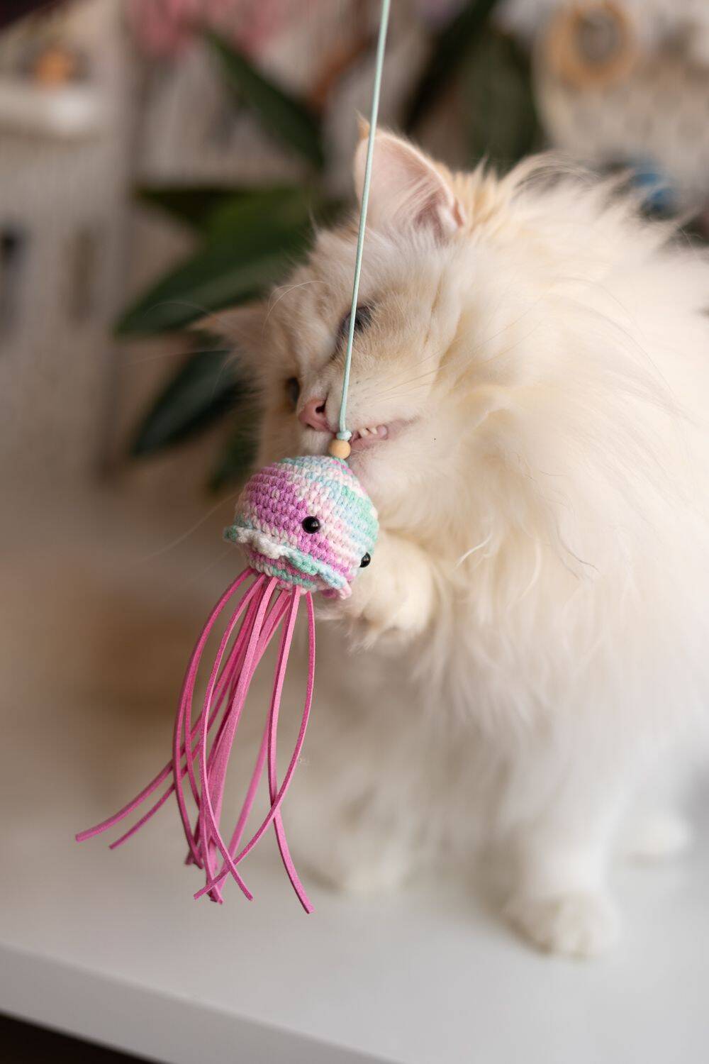 Удочки-дразнилки: они идеально имитируют птицу или мышь. Дайте кошке возможность несколько раз «поймать» игрушку, позвольте ей вцепиться в неё зубами. После этого можно дать лакомство — это и будет финальная «награда».