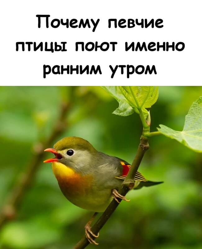 Максимальный охват «слушателей». Ранним утром почти все птицы ещё сидят на своих местах — они не летают в поисках еды, не отвлекаются. Это идеальный момент, чтобы твоя песня прозвучала и была услышана всеми соседями: и потенциальными подругами, и соперниками.