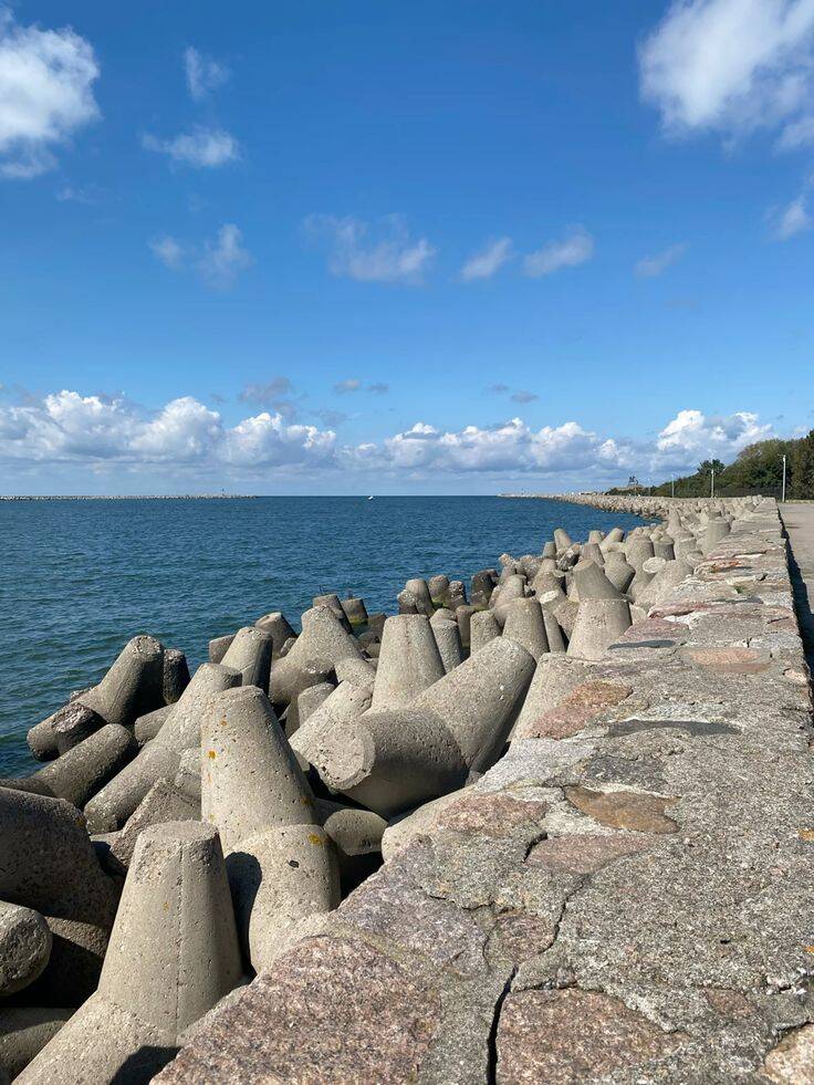 Материал: специальный высокопрочный бетон (марки М300-М400) с водонепроницаемостью W6. Никаких трещин, голой арматуры или сколов — морская вода и мороз быстро превратят дефект в руину.