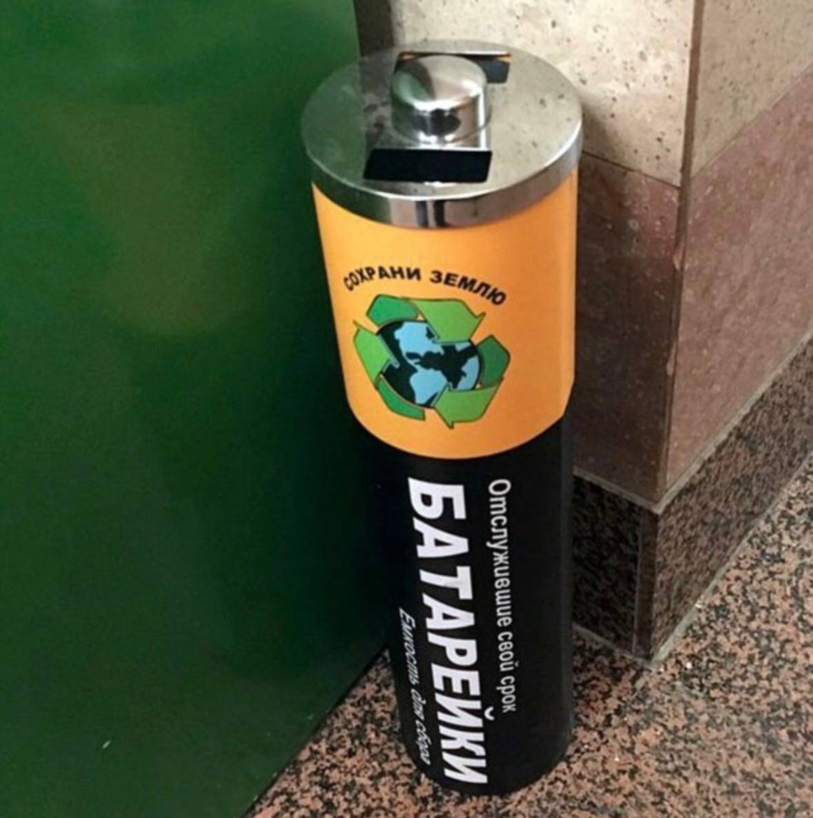 Экобоксы. В некоторых городах стоят жёлтые или зелёные контейнеры для опасных отходов. Туда можно кидать не только батарейки, но и ртутные лампы, градусники.