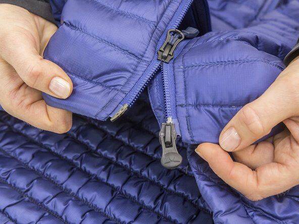 Существует гениальный народный способ: купить второй слайдер (точно такой же по размеру и форме) и поставить его снизу, вместо оторванного ограничителя. Теперь у вас молния с двумя бегунками, которая работает не хуже новой. Нижний слайдер будет играть роль замка и не давать молнии разъезжаться.