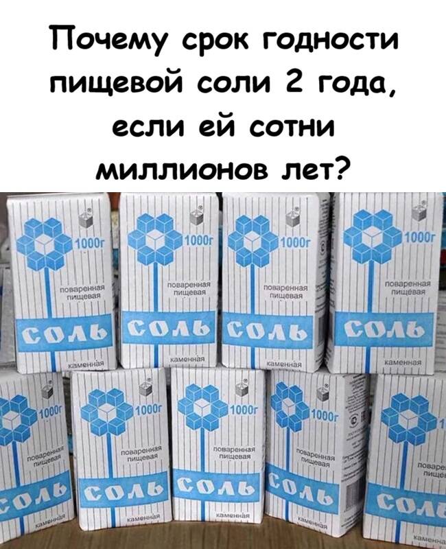 Вы когда-нибудь задумывались, глядя на пачку соли? Её добывают из недр земли, где она пролежала сотни миллионов лет. А потом мы кладём её в шкафчик, видя на упаковке дату «годен до…». По истечению срока годности выбрасывать? Или можно пользоваться дальше?
