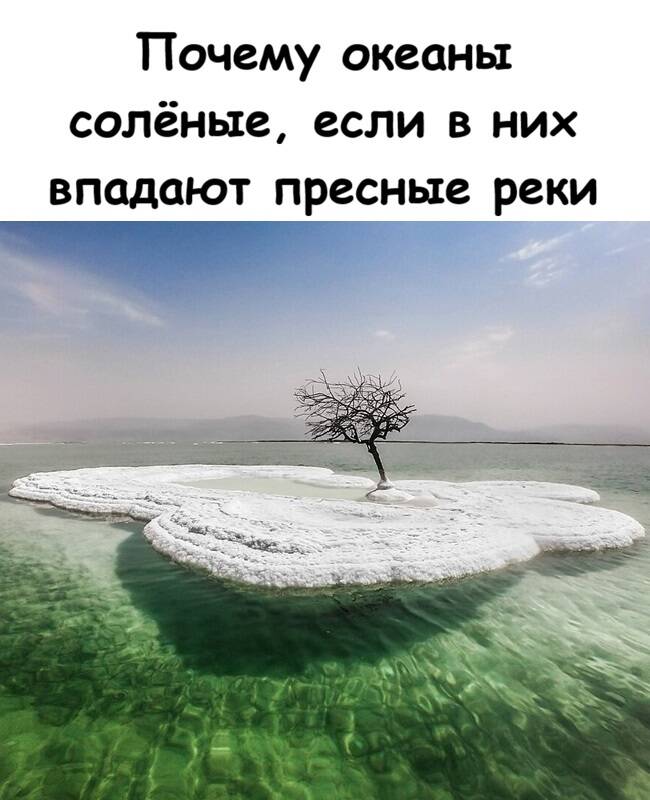 Мёртвое море — не море, а озеро, и оно в 10 раз солонее океана. Потому что вода испаряется, а соль остаётся.
