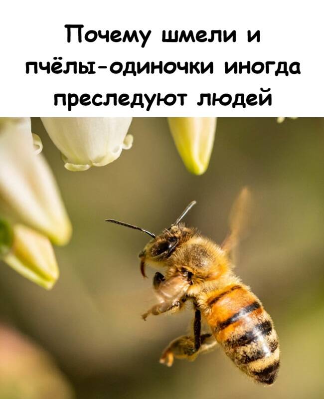 Пчёлы и шмели преследуют людей не из вредности. Пчелы-охранники защищают улей от шума и вибраций, которые ассоциируют с опасностью. Шмели-самцы патрулируют свои угодья и гоняют всех нарушителей, даже если это вы с пакетом продуктов.