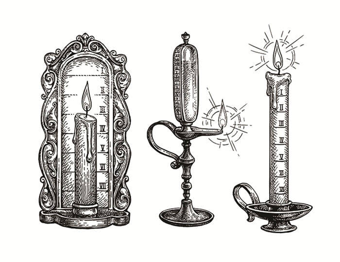 Чтобы контролировать сжигание свечи, в нее на определённой высоте вставляли гвоздь. Когда воск догорал до этой отметки, гвоздь выпадал. Это был сигнал: пора гасить свечу или заменять её новой.