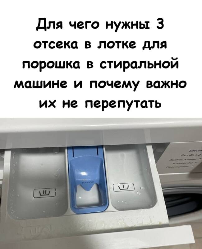 Предварительная стирка, основная, кондиционер — у каждого отсека своя роль, и они не взаимозаменяемы. Если относиться к ним с уважением, машина отплатит вам долгой службой и качественной стиркой. А если перепутать — ну, ничего страшного, просто придётся перестирывать.