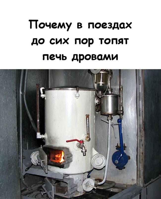 В большинстве стран мира гибридных водонагревателей с печью на дровах или угле в пассажирских поездах нет. Это, можно сказать, наша постсоветская специфика.