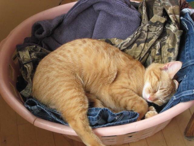 1. Лежит на свежевыглаженном белье и кухонном столе