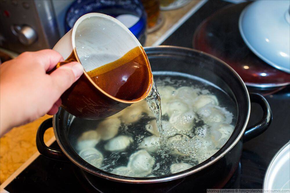 Лайфхак 2: Добавляйте холодную воду, когда пельмени закипят — метод двойного кипячения