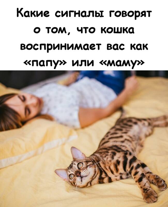 Кошки не говорит вам «мама» или «папа» словами. Но она говорит это действиями. Когда массирует вас лапками — вспоминает своё детство. Когда мурчит — благодарит. Когда приносит мышь — заботится. Когда медленно моргает — целует.