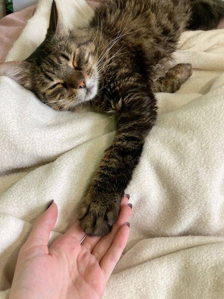 Запах. Ваш запах — это запах дома, безопасности, семьи. Кошки очень чувствительны к запахам, и ваш успокаивает их. Когда кошка спит рядом, она пропитывается вашим запахом, а вы — её. Это взаимная маркировка «свой».