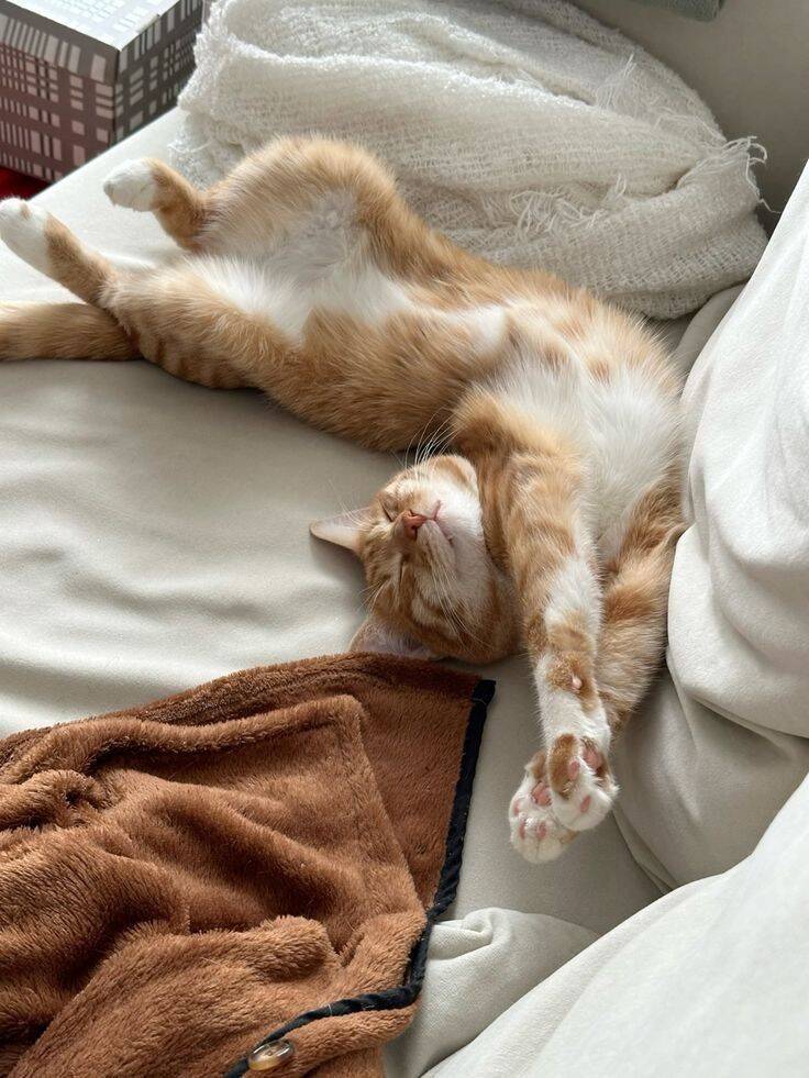 На спине, с открытым животом — полное доверие. Живот — самое уязвимое место кошки. Если она спит на спине, задрав лапы и подставив пузико, значит, она чувствует себя в абсолютной безопасности. Рядом с вами она не боится врагов, не ожидает нападения. Это комплимент высшей пробы.