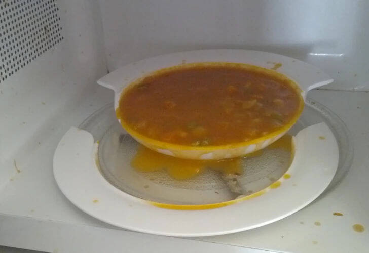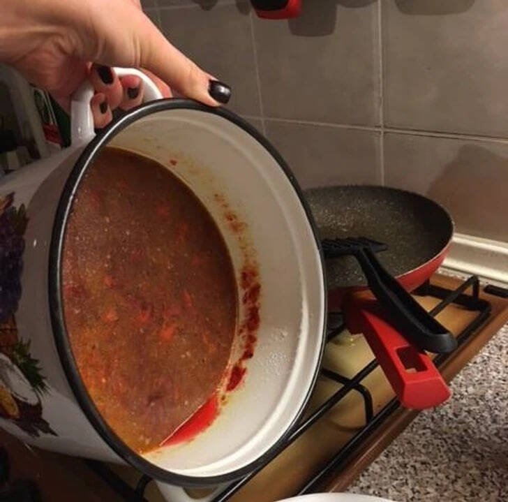 8. "Жена часто говорит, что я так плох в готовке, что даже тарелку супа не смогу разогреть. Кажется, она была права"