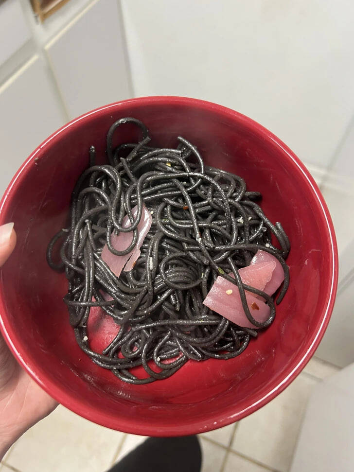 1. "Решила приготовить пасту „Алио и олио“ с чернилами кальмара"