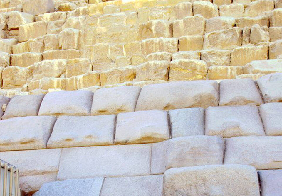 Облицовка пирамид представляла собой слой тщательно обработанных плит из белого египетского известняка, который отличался высокой плотностью и светлым оттенком. Эти блоки подгонялись с такой точностью, что между ними почти не оставалось зазоров. В результате поверхность становилась идеально гладкой, скрывая ступенчатую структуру внутренних блоков.