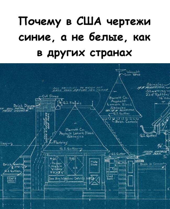 Так почему же в США чертежи синие, а не белые? Потому что так сложилось исторически, потому что это было удобно на стройках, потому что американцы уважают традиции и не спешат отказываться от того, что работает.