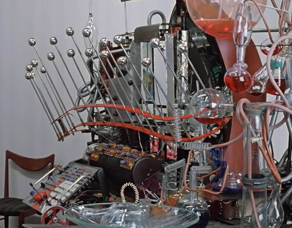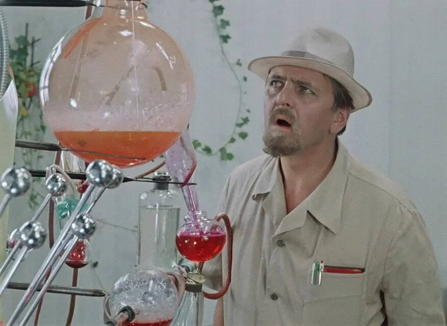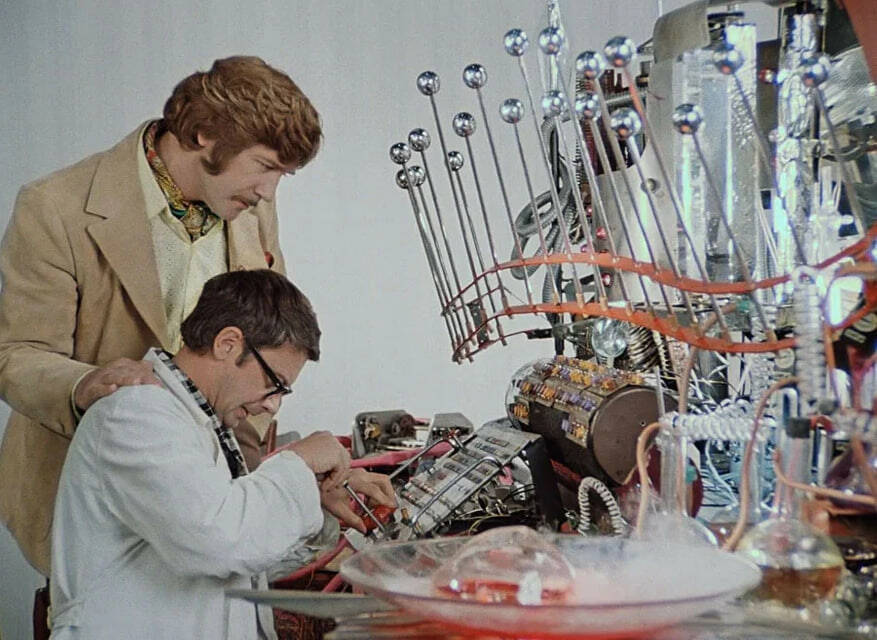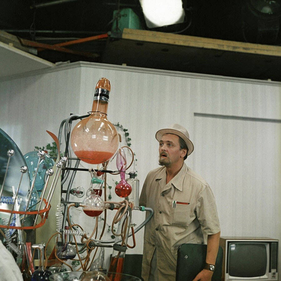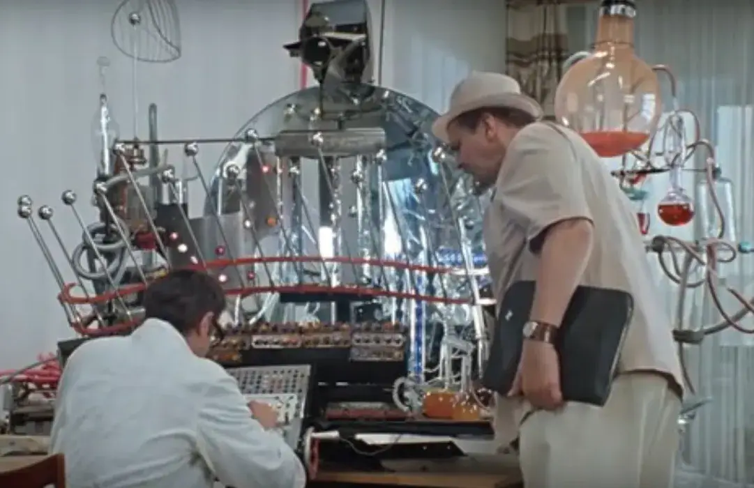 На третьи сутки на столе у режиссёра лежал эскиз. Гайдай вздохнул. Вздохнул тяжело, как после той истории с «Ы». На бумаге была какая-то дикая смесь: стеклянные колбы, торчащие во все стороны провода, странные склянки с разноцветной жидкостью и абсолютно нефункциональные рычаги.