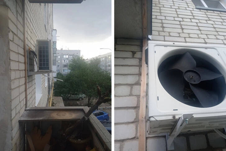 6. "Вчера, пока я был на работе, мой сосед решил установить себе кондиционер. Вот такой вид теперь вижу каждый день, когда выхожу из квартиры"