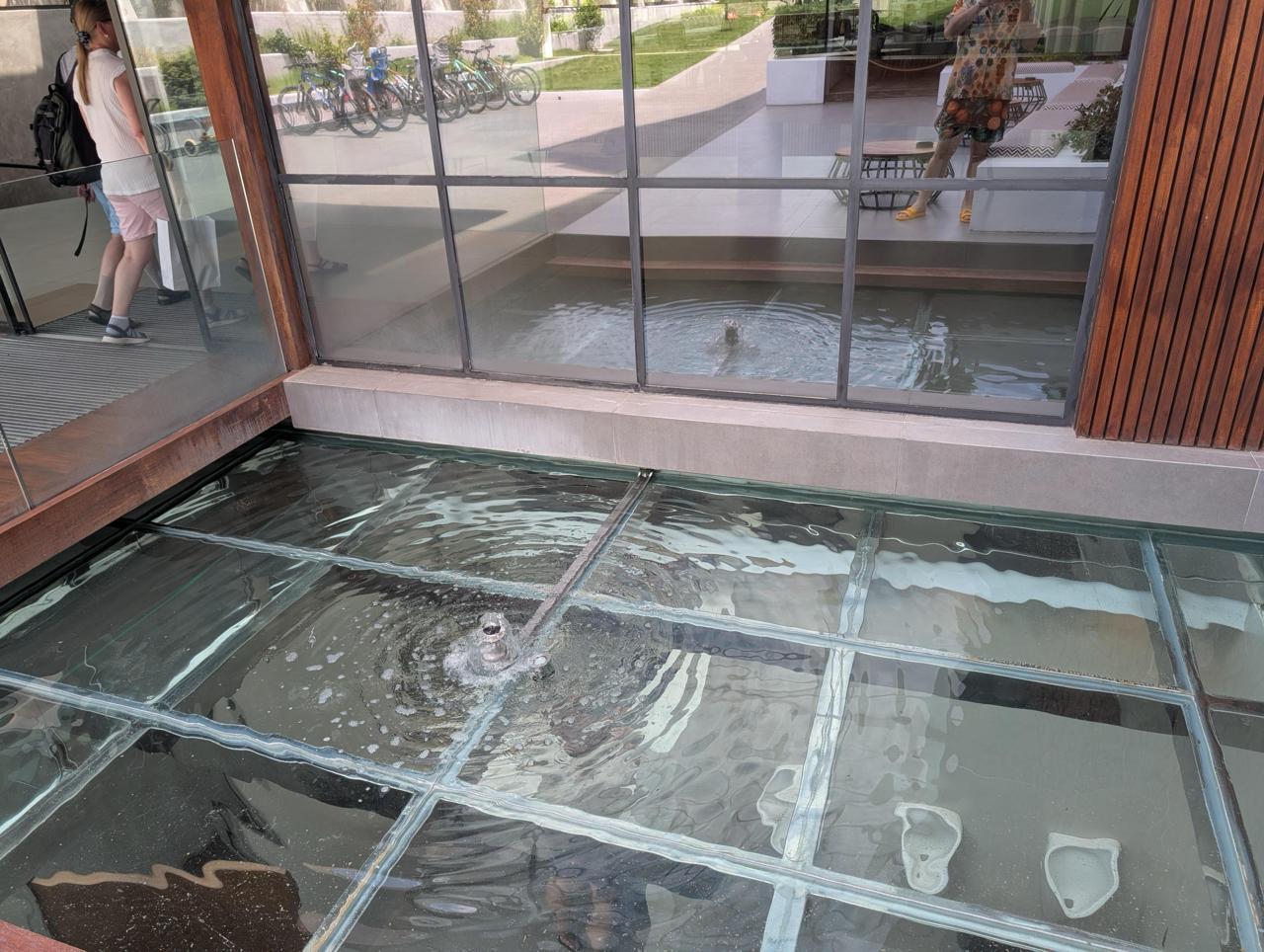 13. В отеле, где я остановился, есть мужской туалет со стеклянным потолком, расположенный прямо под главным входом