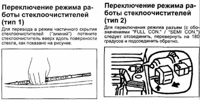 При этом рабочая траектория стеклоочистителей во время движения не меняется — «зимний» режим касается только их «парковочного» положения.