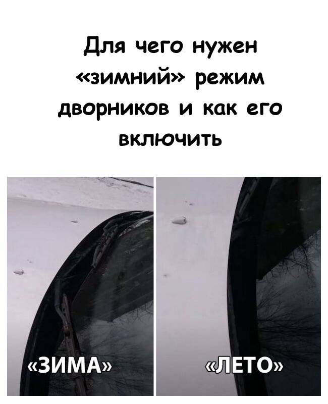 Функция «зимнего» режима дворников помогает щеткам меньше замерзать, дольше служить и облегчает их обслуживание в холодное время года. Самое главное — перед использованием заглянуть в руководство по эксплуатации именно вашей машины: там всегда есть точная инструкция.