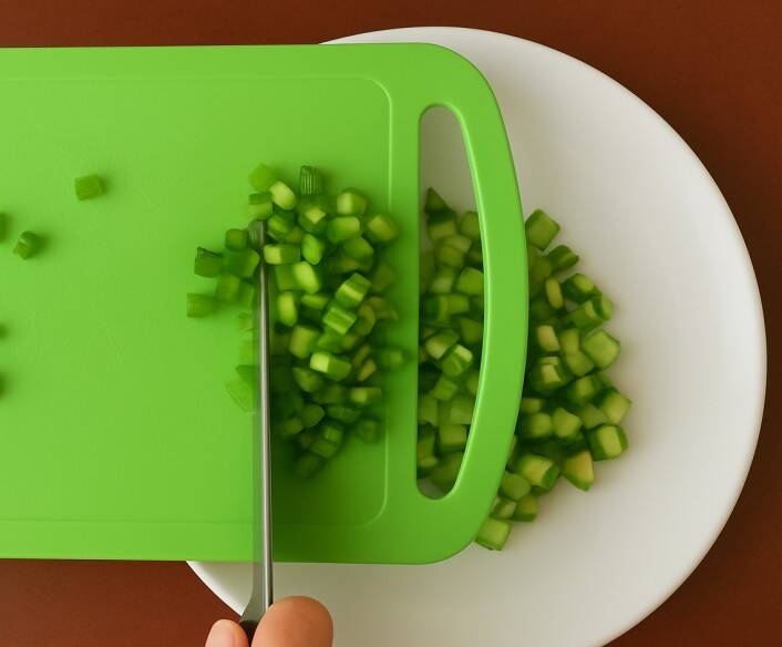 При пересыпании нарезанных овощей, зелени или мяса с доски в миску или кастрюлю продукты часто рассыпаются. Если использовать широкий вырез, он работает как желоб: кусочки аккуратно соскальзывают именно туда, куда нужно. Это значительно упрощает готовку и делает процесс чище. Попробуйте в следующий раз, если вы раньше так не делали.